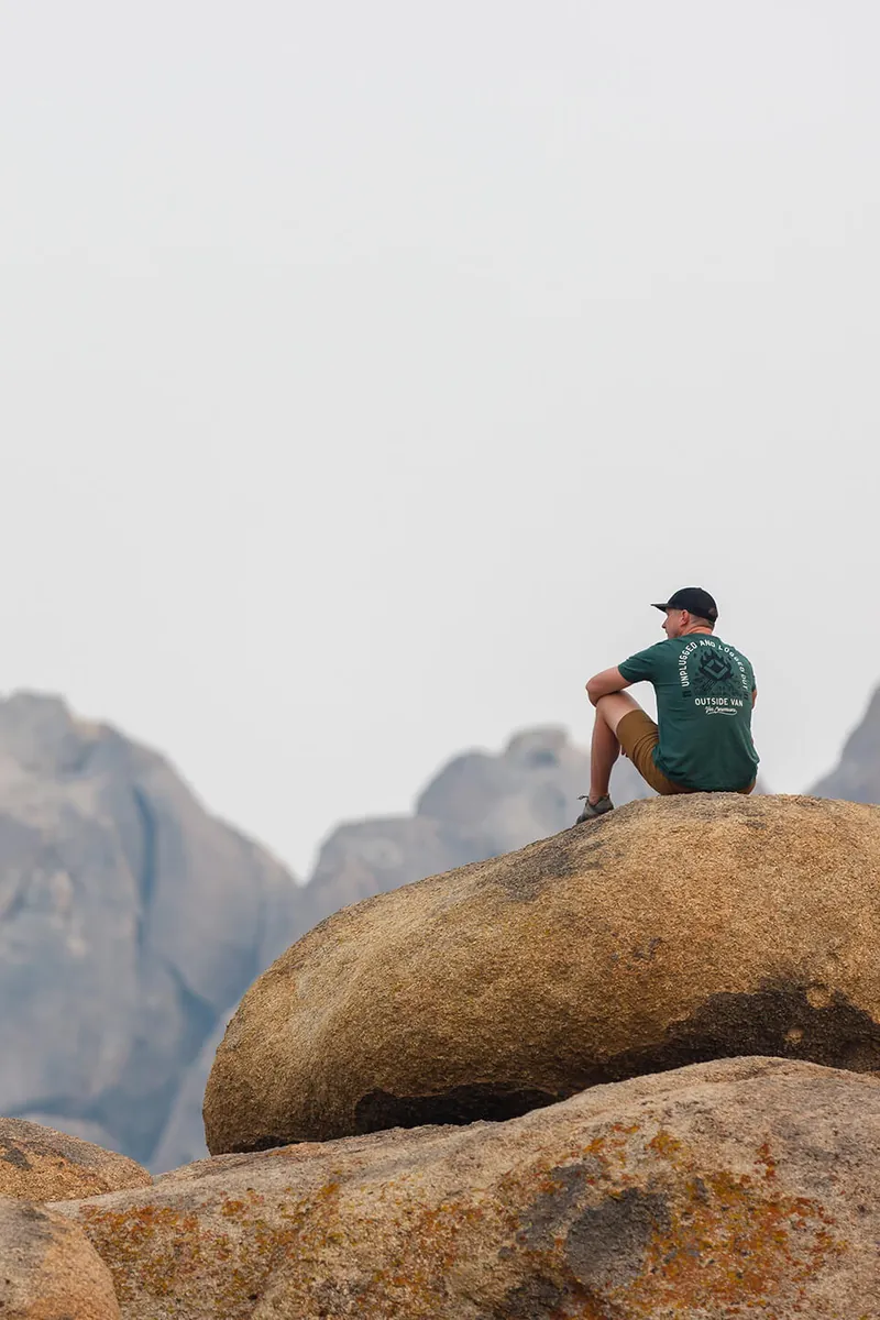 There was a feeling of discouragement the first night at Alabama Hills due to smoky skies. It was hard to enjoy the environment due to air quality, let alone photograph our vans with any justice. Van life is about accepting what’s out of your control, rolling with the changes, and adaptability. They broke for lunch (a metaphorical breather) and accepted the fact we couldn’t avoid what was overhead and all around. After a few more stops at secluded locations for photographs, clearing skies were visible in the horizon.