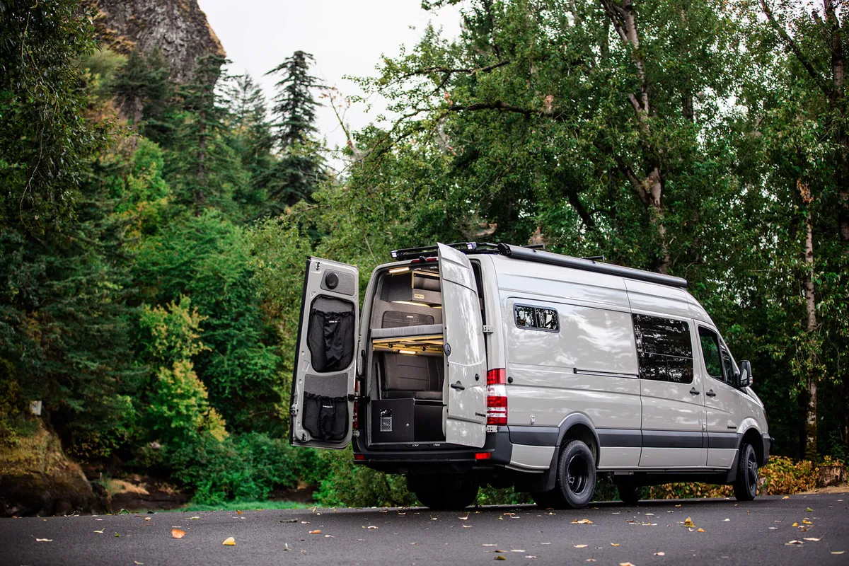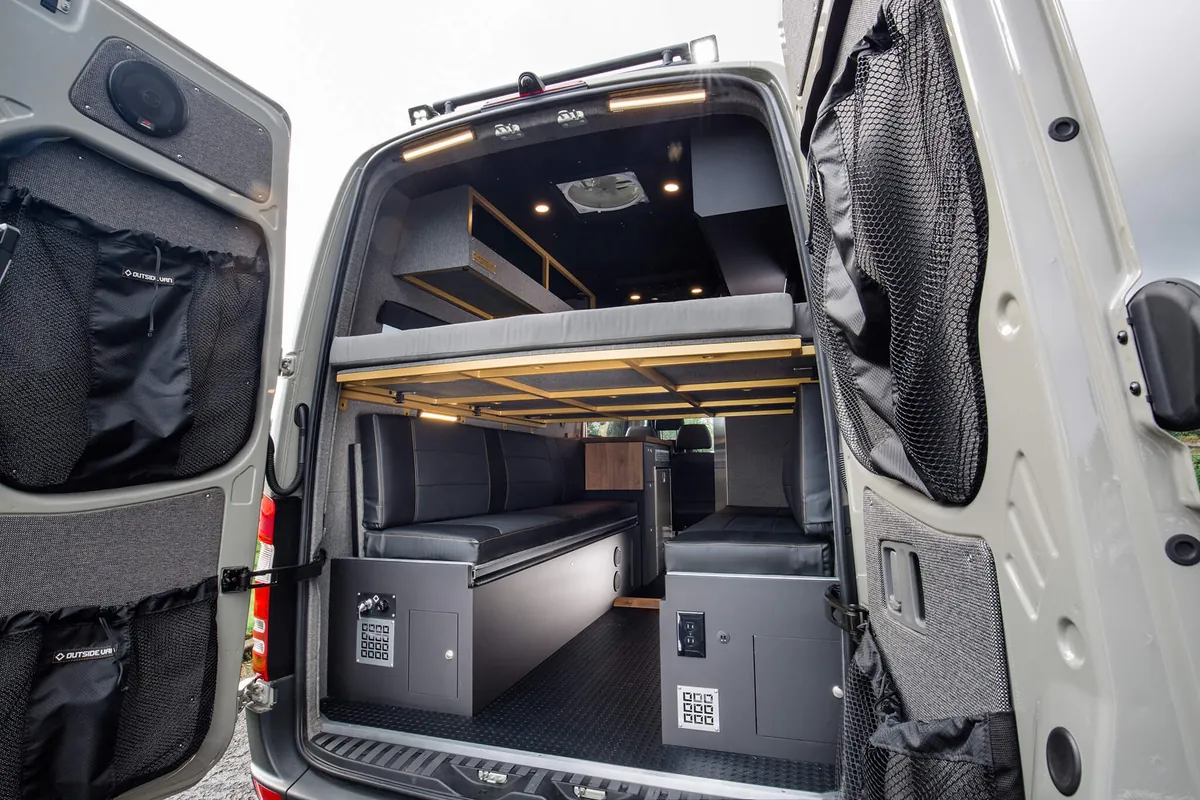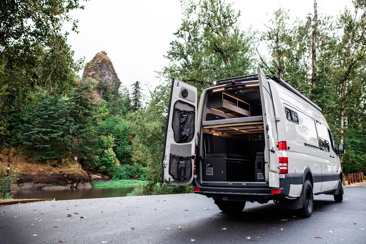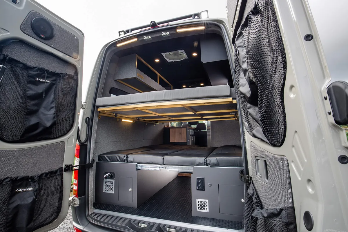 Our custom Sprinter vans are engineered to provide the ultimate van life camping experience, combining the legendary reliability of Mercedes-Benz with camping-specific modifications. Experience the freedom of the open road as your Sprinter camper van transforms into your home away from home. With specialized features for camp cooking, off-grid camping, including sustainable power solutions and efficient storage, an Outside Van ensures that your camping adventures are comfortable and convenient. Our camper vans are also outfitted with tailored storage solutions to organize and haul any gear you need for whatever you enjoy doing during your vanlife camping trips, from hiking to fishing to just making s’mores around the campfire.