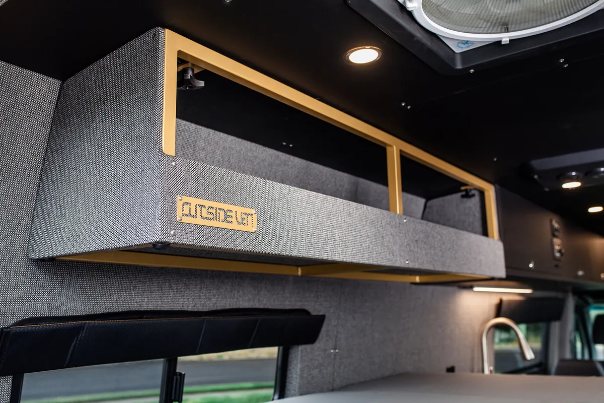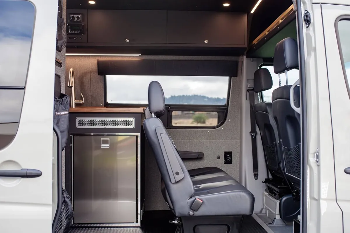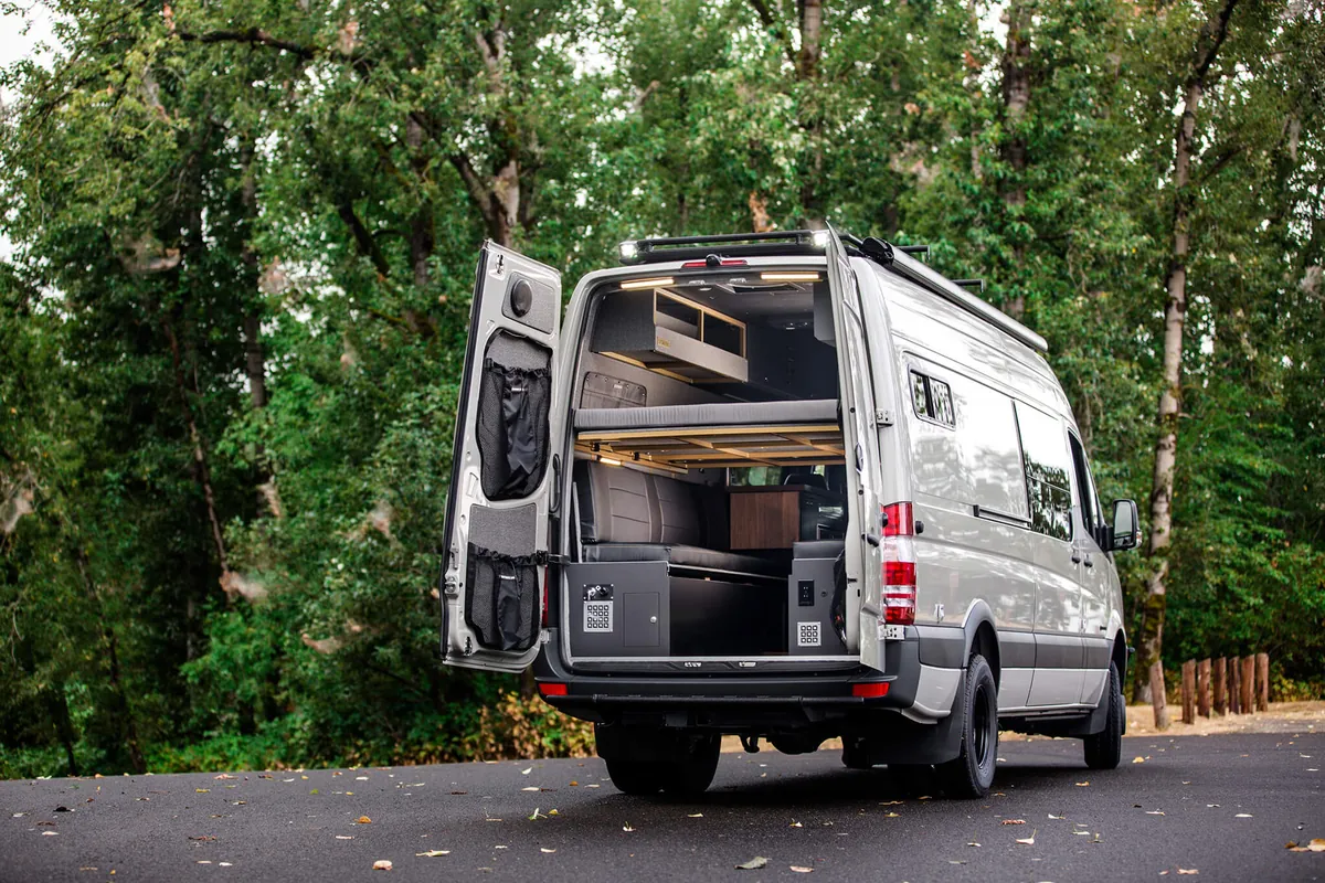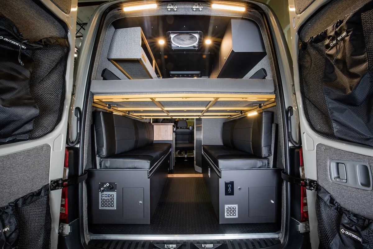Our custom Sprinter vans are engineered to provide the ultimate van life camping experience, combining the legendary reliability of Mercedes-Benz with camping-specific modifications. Experience the freedom of the open road as your Sprinter camper van transforms into your home away from home. With specialized features for camp cooking, off-grid camping, including sustainable power solutions and efficient storage, an Outside Van ensures that your camping adventures are comfortable and convenient. Our camper vans are also outfitted with tailored storage solutions to organize and haul any gear you need for whatever you enjoy doing during your vanlife camping trips, from hiking to fishing to just making s’mores around the campfire.