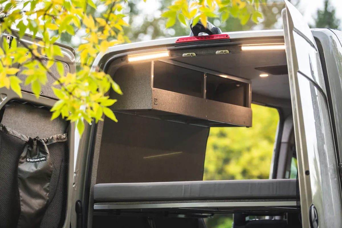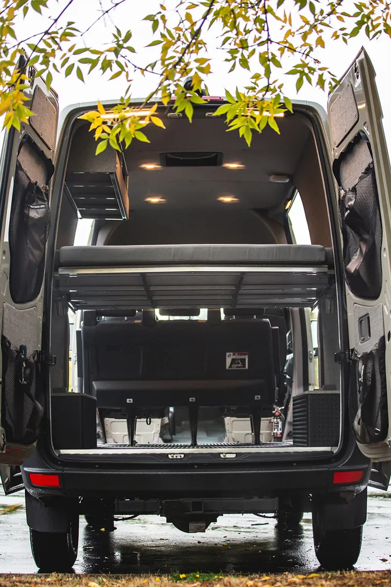Our custom Sprinter vans are engineered to provide the ultimate van life camping experience, combining the legendary reliability of Mercedes-Benz with camping-specific modifications. Experience the freedom of the open road as your Sprinter camper van transforms into your home away from home. With specialized features for camp cooking, off-grid camping, including sustainable power solutions and efficient storage, an Outside Van ensures that your camping adventures are comfortable and convenient. Our camper vans are also outfitted with tailored storage solutions to organize and haul any gear you need for whatever you enjoy doing during your vanlife camping trips, from hiking to fishing to just making s’mores around the campfire.