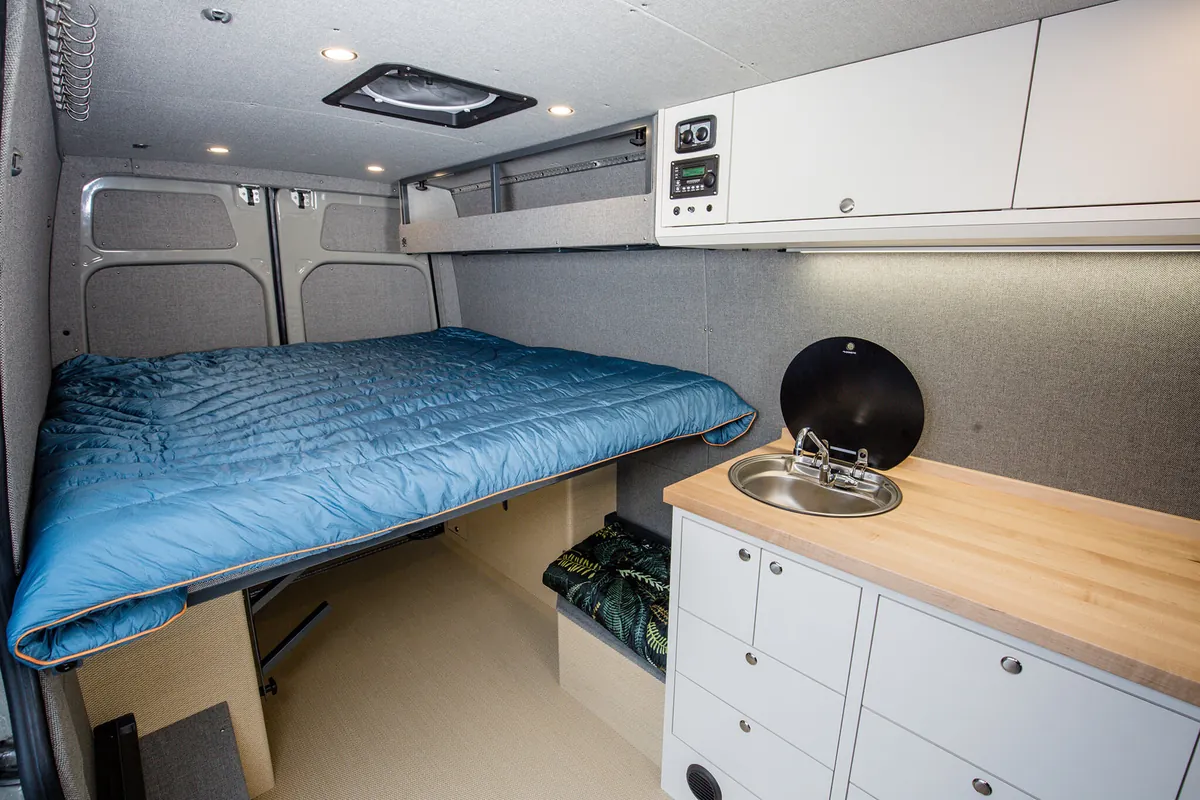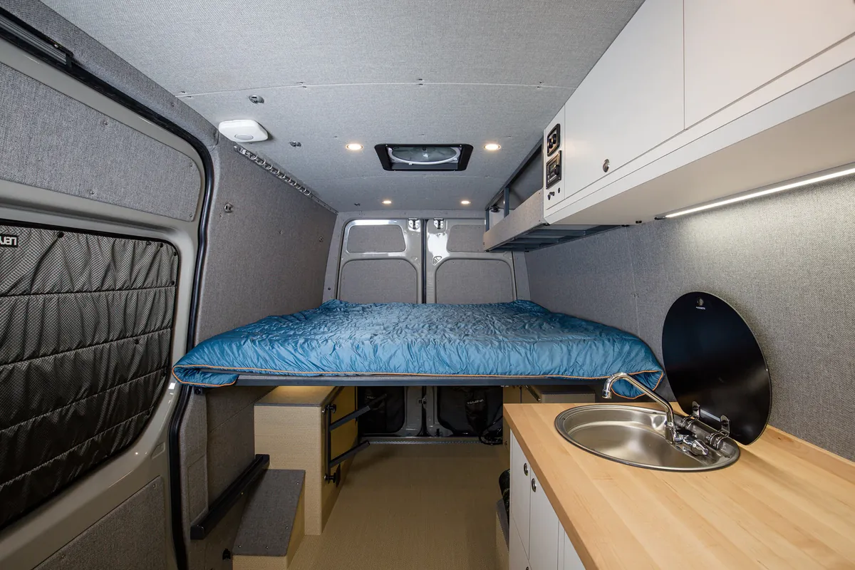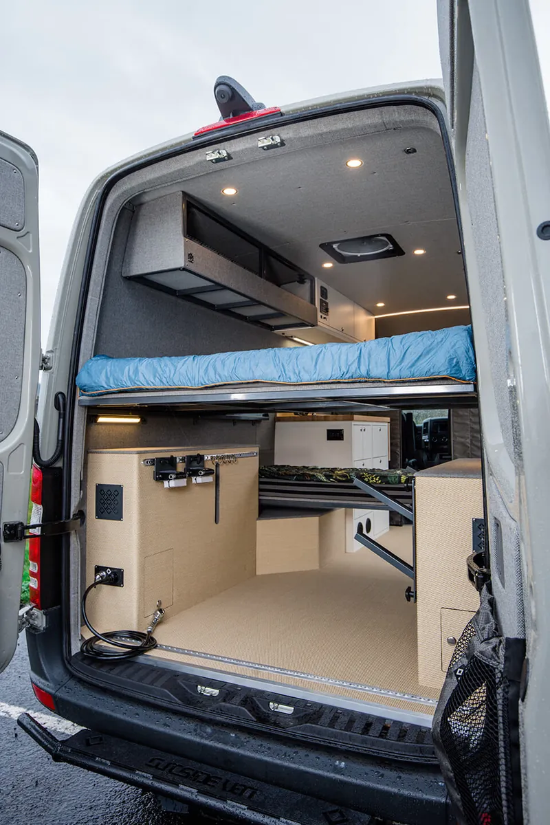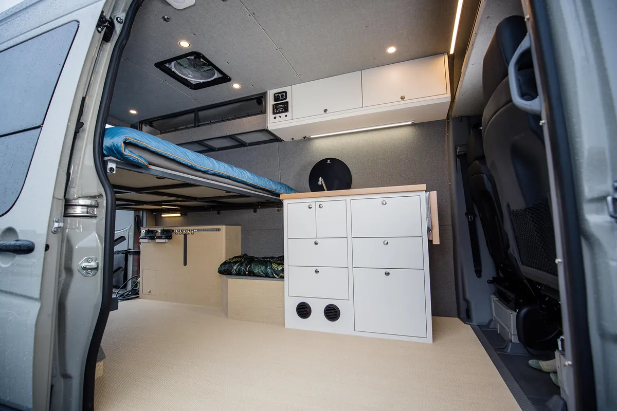 We integrate bespoke features into our custom four-season Sprinter vans to ensure your winter adventures are unforgettable. With specialized storage solutions for your snow sports equipment, custom appliances to keep you warm, clean, and fed; your van becomes a cozy mobile base camp for your alpine sports endeavors. For those that want to stay off grid or just get away for the day, we design vans to keep you safe and comfortable on the roads less traveled.