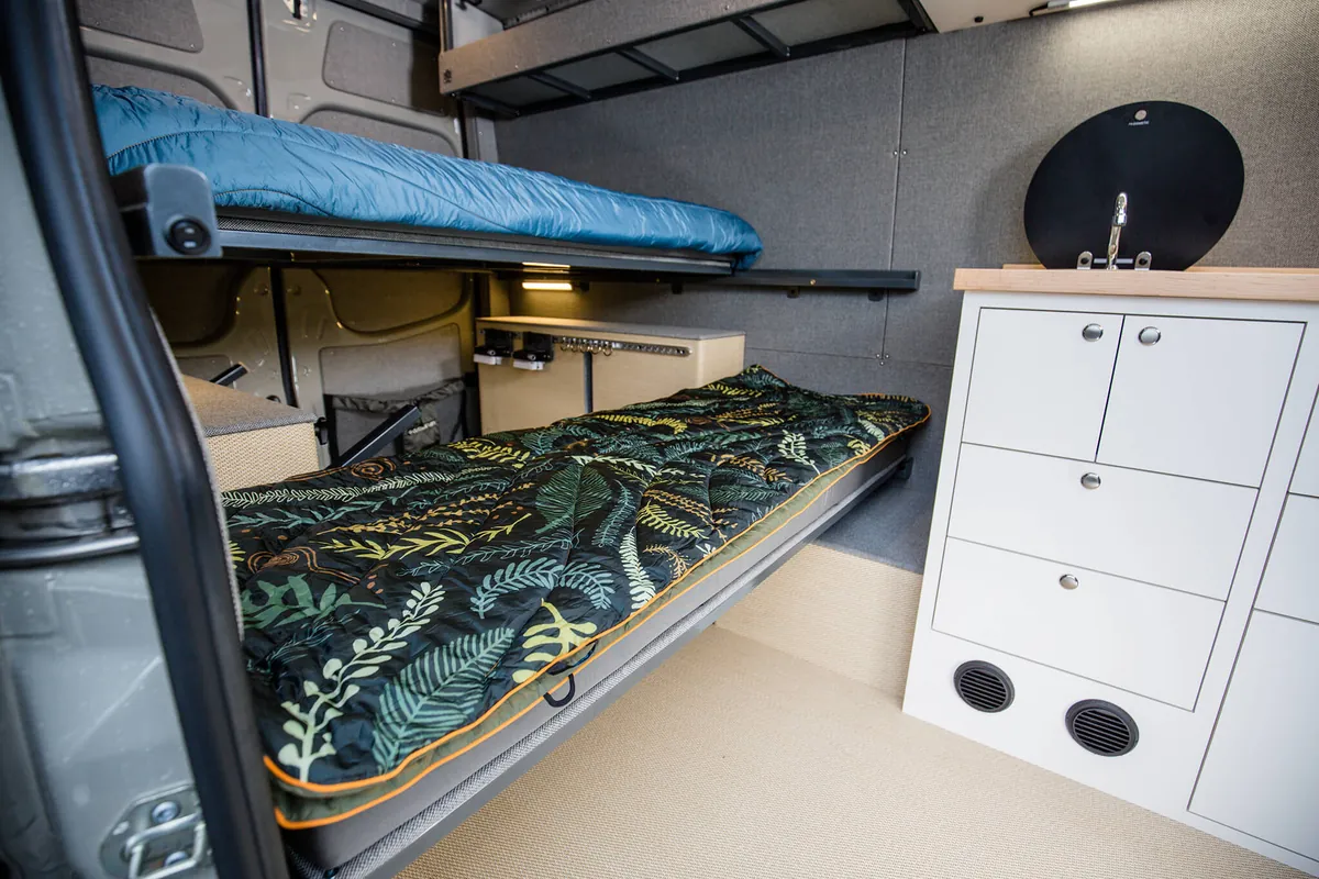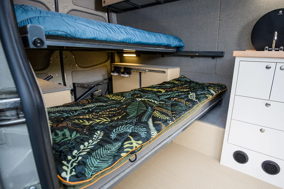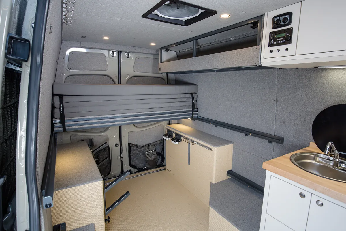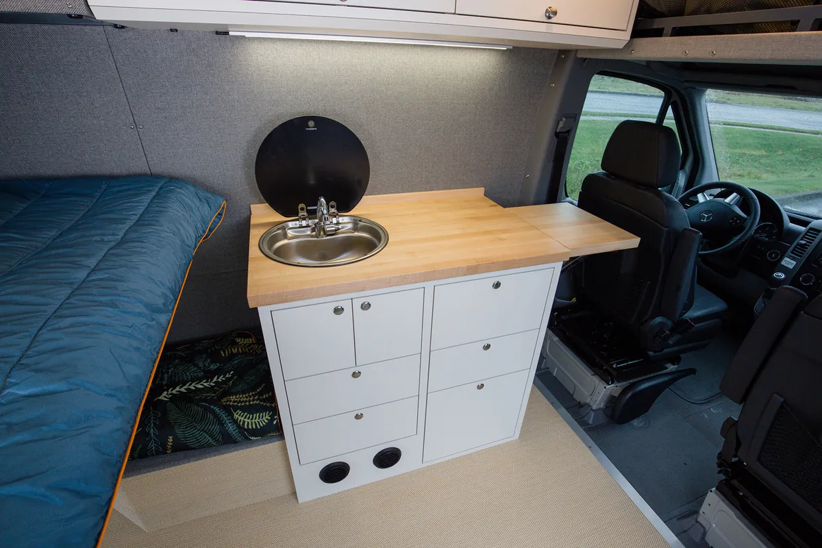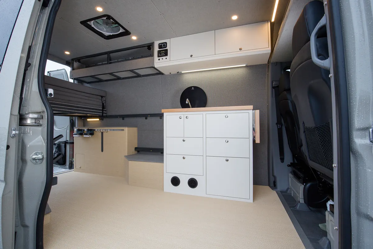 We integrate bespoke features into our custom four-season Sprinter vans to ensure your winter adventures are unforgettable. With specialized storage solutions for your snow sports equipment, custom appliances to keep you warm, clean, and fed; your van becomes a cozy mobile base camp for your alpine sports endeavors. For those that want to stay off grid or just get away for the day, we design vans to keep you safe and comfortable on the roads less traveled.
