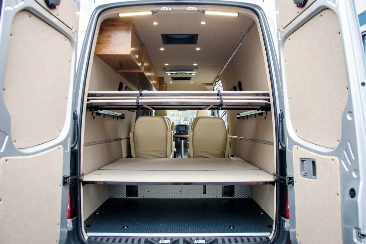 Our custom Sprinter vans are engineered to provide the ultimate van life camping experience, combining the legendary reliability of Mercedes-Benz with camping-specific modifications. Experience the freedom of the open road as your Sprinter camper van transforms into your home away from home. With specialized features for camp cooking, off-grid camping, including sustainable power solutions and efficient storage, an Outside Van ensures that your camping adventures are comfortable and convenient. Our camper vans are also outfitted with tailored storage solutions to organize and haul any gear you need for whatever you enjoy doing during your vanlife camping trips, from hiking to fishing to just making s’mores around the campfire.