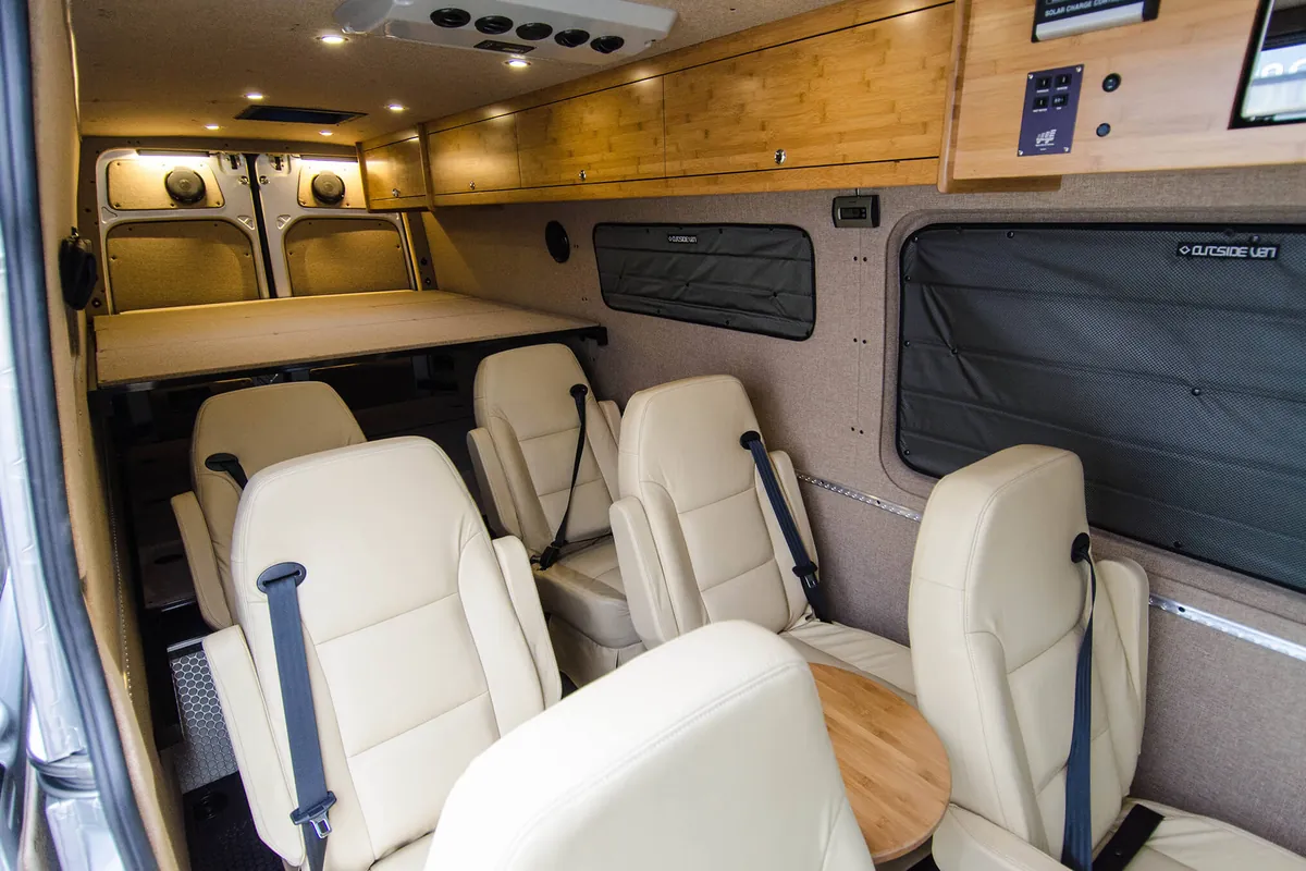 Outside Vans can also be customized for the number of people you want to camp with, as well as the environments you want to camp in. Build a four season van for the whole family or your dream solo trip. Take it to explore the hottest desert or the snowiest mountain ranges. No matter where you want to go or who you want to bring, we can help make it happen.