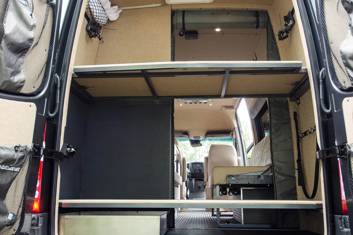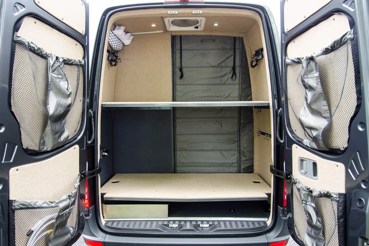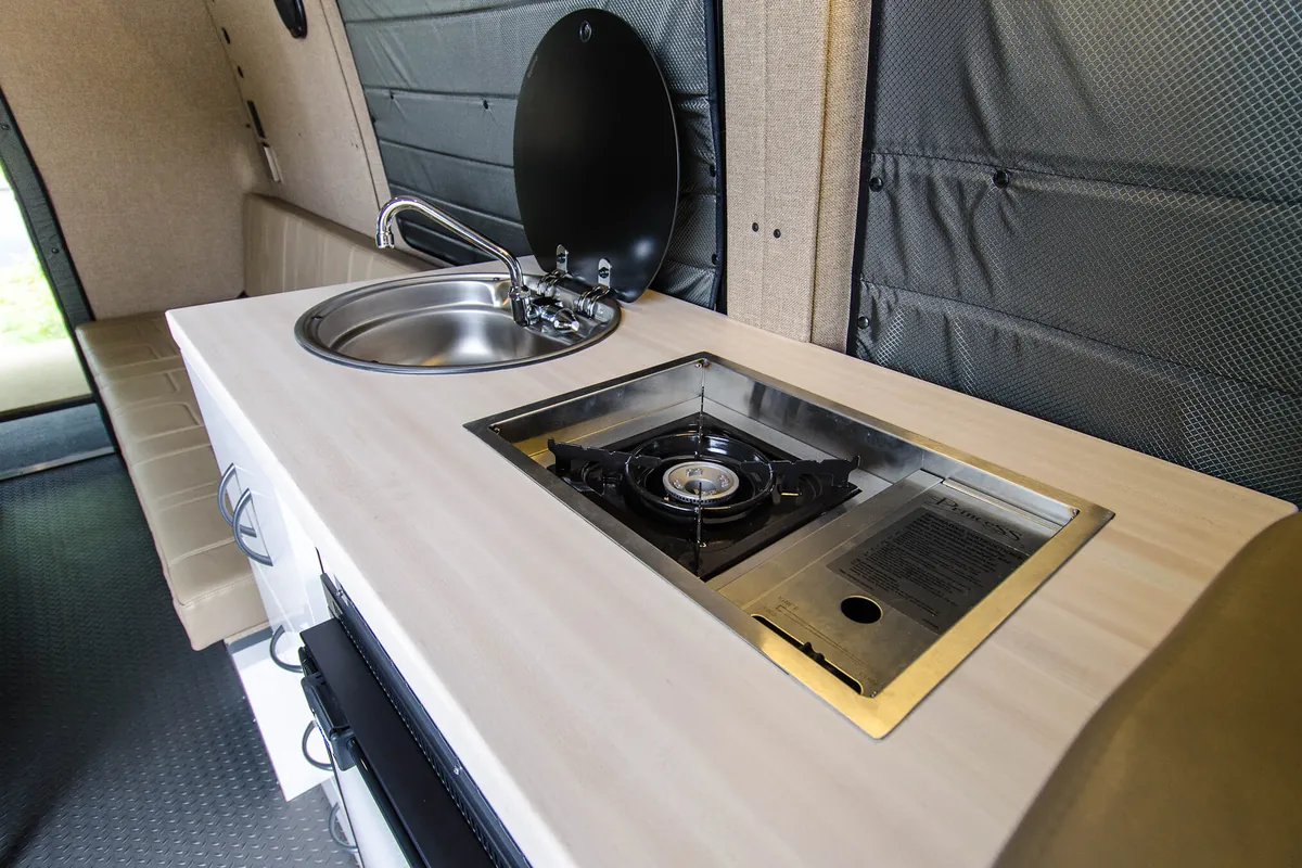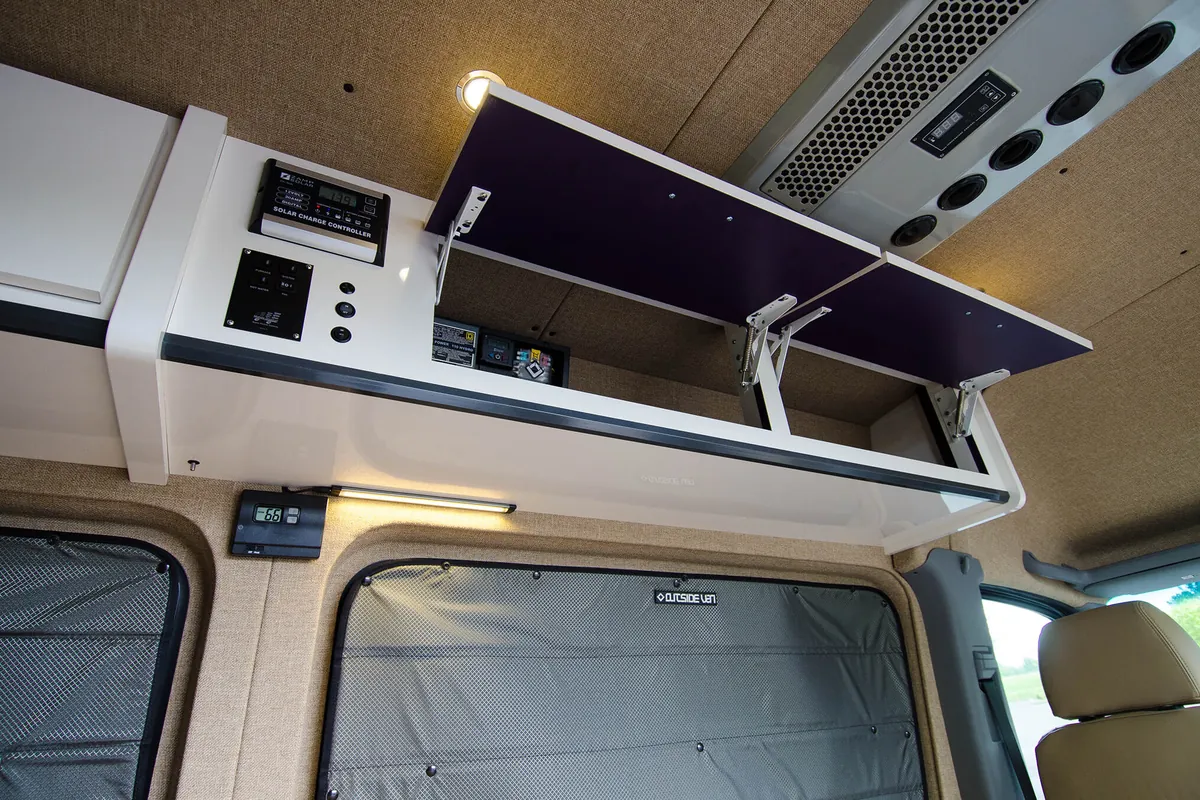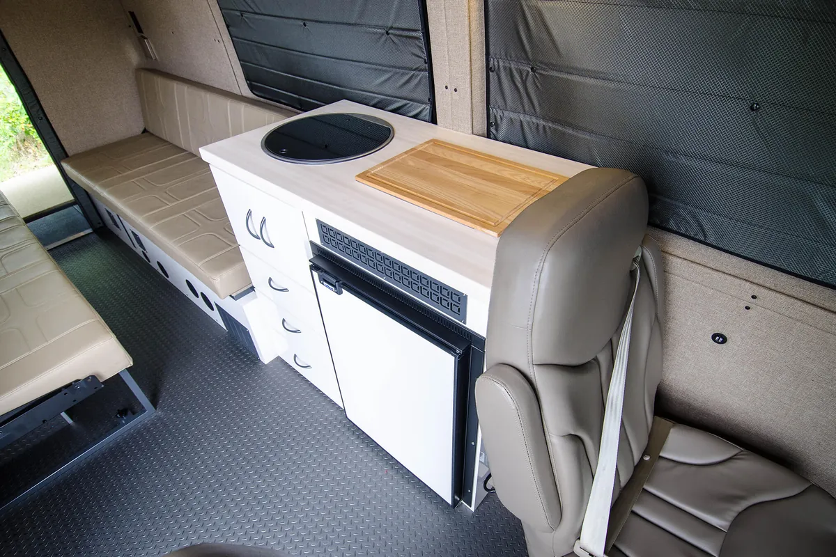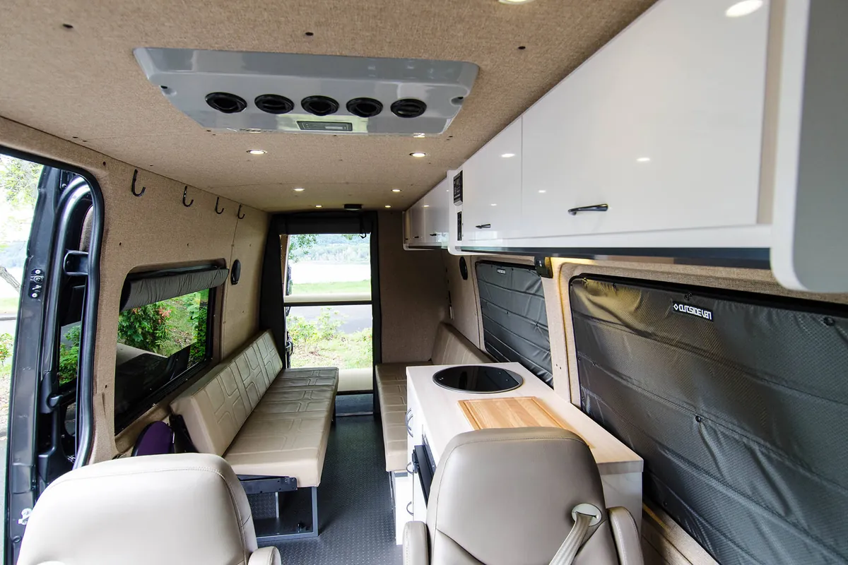 Our custom Sprinter vans are engineered to provide the ultimate van life camping experience, combining the legendary reliability of Mercedes-Benz with camping-specific modifications. Experience the freedom of the open road as your Sprinter camper van transforms into your home away from home. With specialized features for camp cooking, off-grid camping, including sustainable power solutions and efficient storage, an Outside Van ensures that your camping adventures are comfortable and convenient. Our camper vans are also outfitted with tailored storage solutions to organize and haul any gear you need for whatever you enjoy doing during your vanlife camping trips, from hiking to fishing to just making s’mores around the campfire.
