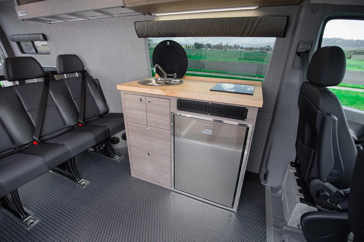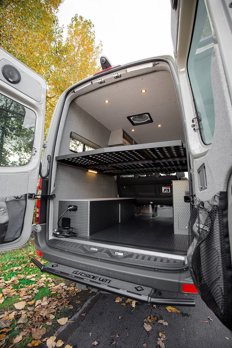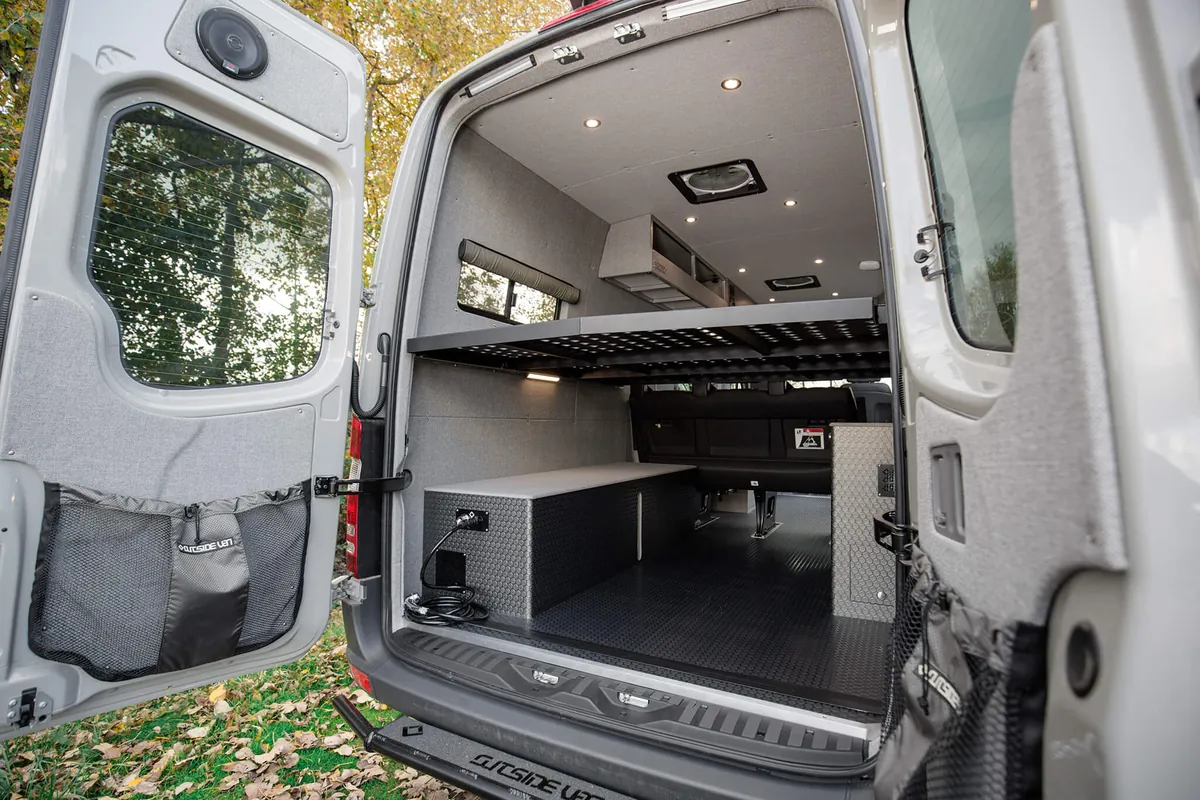 Our custom Sprinter vans are engineered to provide the ultimate van life camping experience, combining the legendary reliability of Mercedes-Benz with camping-specific modifications. Experience the freedom of the open road as your Sprinter camper van transforms into your home away from home. With specialized features for camp cooking, off-grid camping, including sustainable power solutions and efficient storage, an Outside Van ensures that your camping adventures are comfortable and convenient. Our camper vans are also outfitted with tailored storage solutions to organize and haul any gear you need for whatever you enjoy doing during your vanlife camping trips, from hiking to fishing to just making s’mores around the campfire.