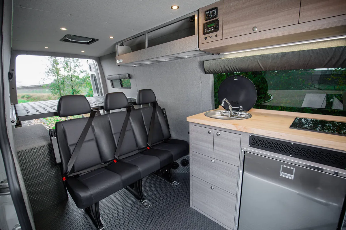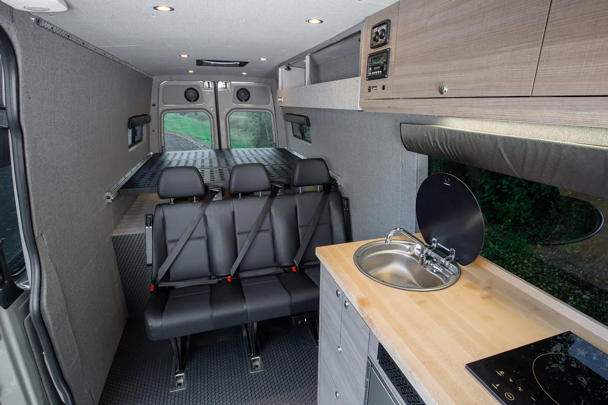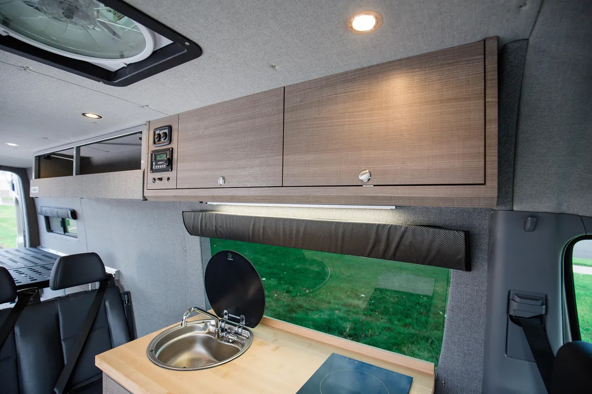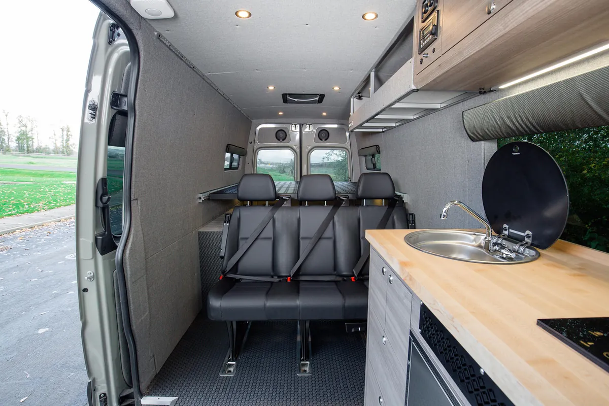 Our custom Sprinter vans are engineered to provide the ultimate van life camping experience, combining the legendary reliability of Mercedes-Benz with camping-specific modifications. Experience the freedom of the open road as your Sprinter camper van transforms into your home away from home. With specialized features for camp cooking, off-grid camping, including sustainable power solutions and efficient storage, an Outside Van ensures that your camping adventures are comfortable and convenient. Our camper vans are also outfitted with tailored storage solutions to organize and haul any gear you need for whatever you enjoy doing during your vanlife camping trips, from hiking to fishing to just making s’mores around the campfire.