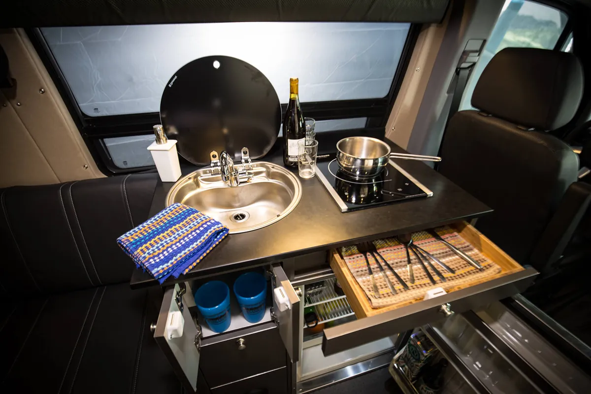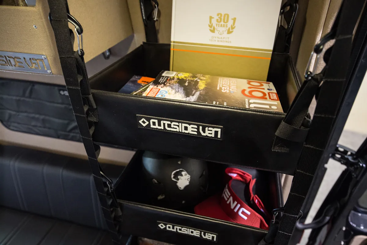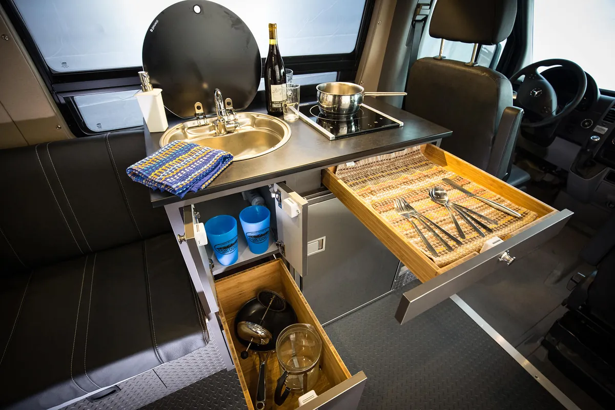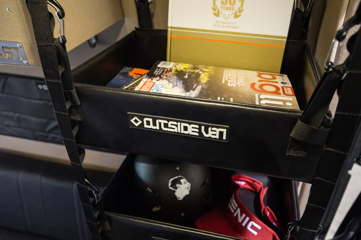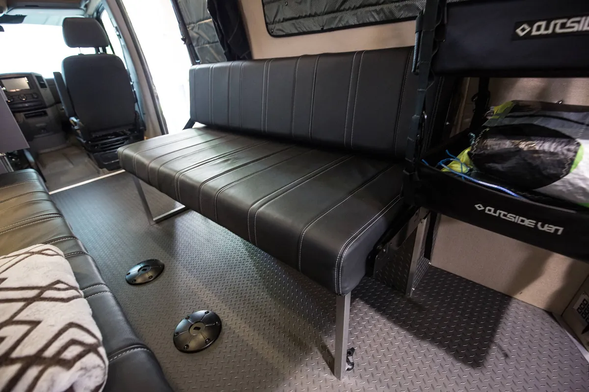 Our custom Sprinter vans are engineered to provide the ultimate van life camping experience, combining the legendary reliability of Mercedes-Benz with camping-specific modifications. Experience the freedom of the open road as your Sprinter camper van transforms into your home away from home. With specialized features for camp cooking, off-grid camping, including sustainable power solutions and efficient storage, an Outside Van ensures that your camping adventures are comfortable and convenient. Our camper vans are also outfitted with tailored storage solutions to organize and haul any gear you need for whatever you enjoy doing during your vanlife camping trips, from hiking to fishing to just making s’mores around the campfire.