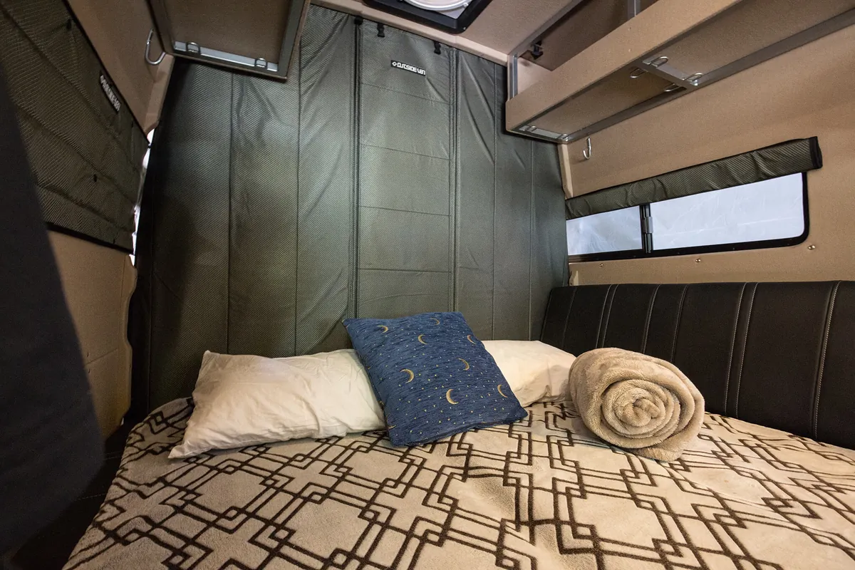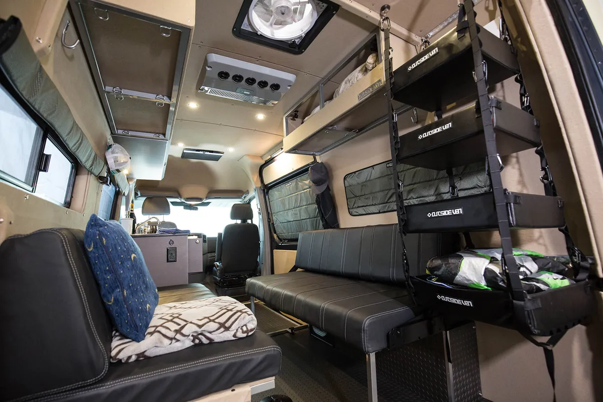 Outside Vans can also be customized for the number of people you want to camp with, as well as the environments you want to camp in. Build a four season van for the whole family or your dream solo trip. Take it to explore the hottest desert or the snowiest mountain ranges. No matter where you want to go or who you want to bring, we can help make it happen.