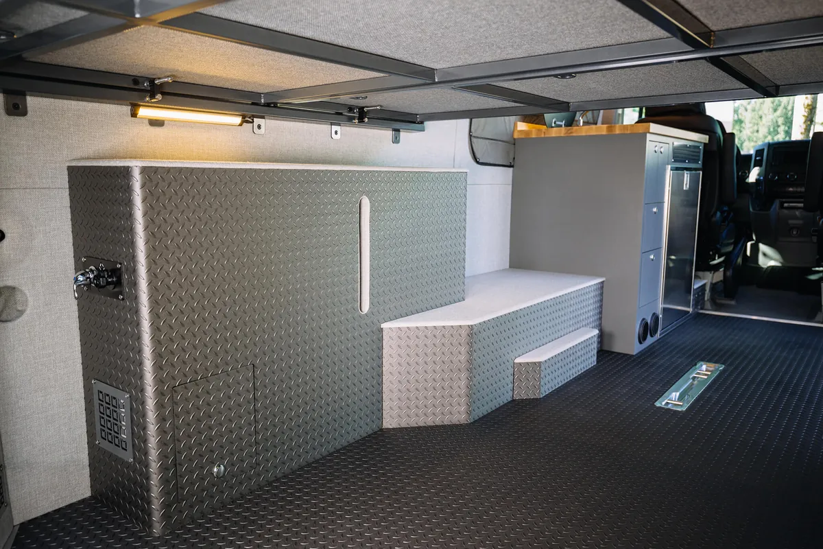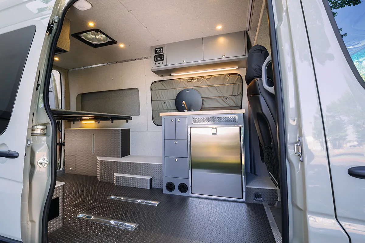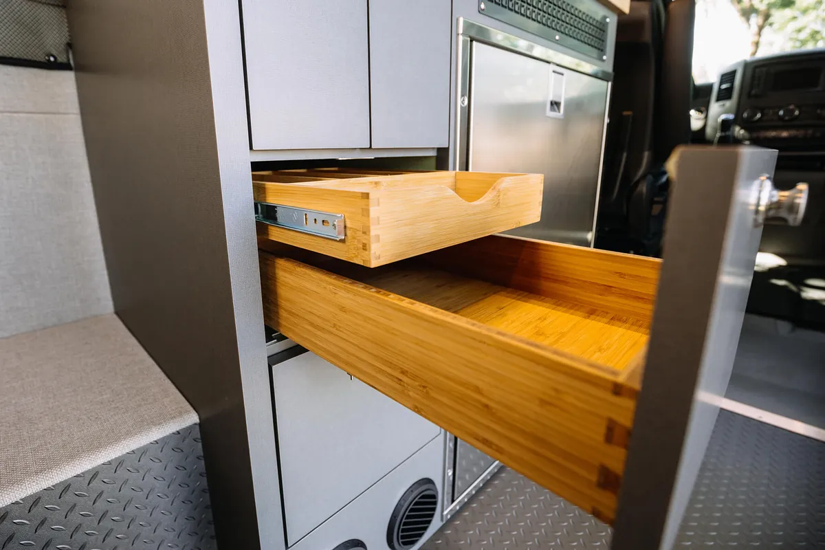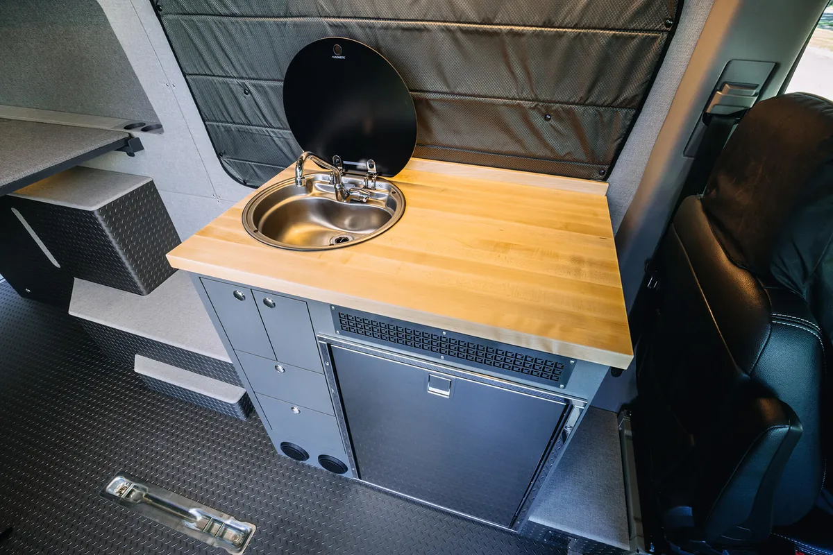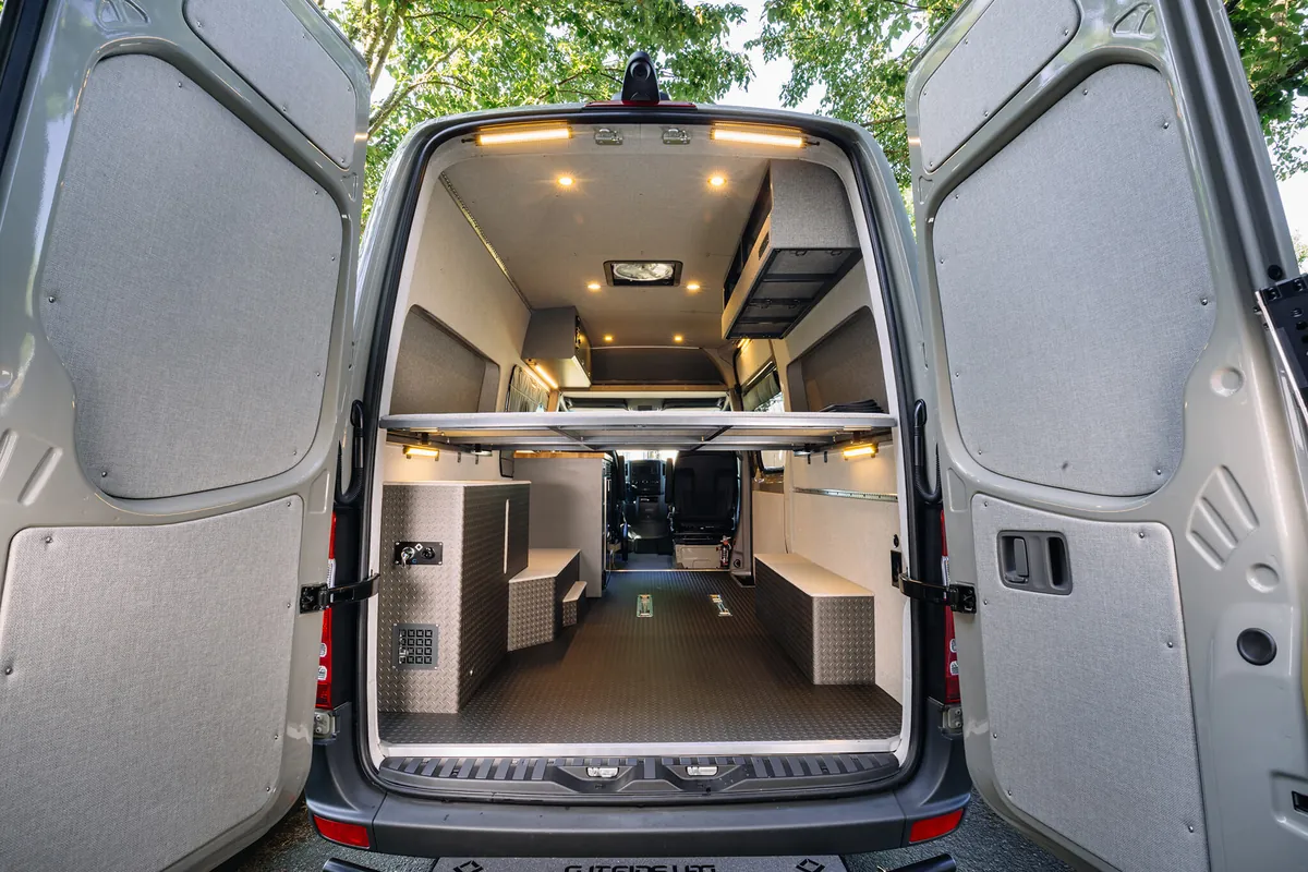 Our custom Sprinter vans are engineered to provide the ultimate van life camping experience, combining the legendary reliability of Mercedes-Benz with camping-specific modifications. Experience the freedom of the open road as your Sprinter camper van transforms into your home away from home. With specialized features for camp cooking, off-grid camping, including sustainable power solutions and efficient storage, an Outside Van ensures that your camping adventures are comfortable and convenient. Our camper vans are also outfitted with tailored storage solutions to organize and haul any gear you need for whatever you enjoy doing during your vanlife camping trips, from hiking to fishing to just making s’mores around the campfire.
