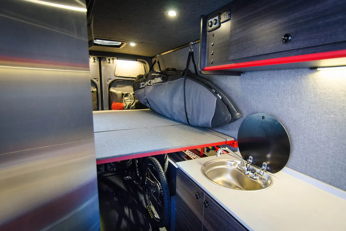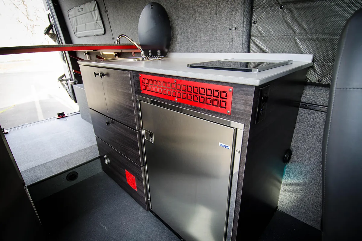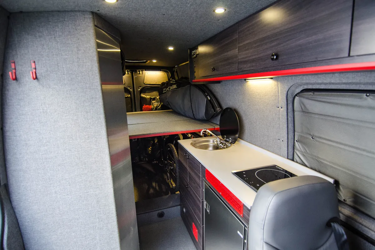 We integrate bespoke features into our custom four-season Sprinter vans to ensure your winter adventures are unforgettable. With specialized storage solutions for your snow sports equipment, custom appliances to keep you warm, clean, and fed; your van becomes a cozy mobile base camp for your alpine sports endeavors. For those that want to stay off grid or just get away for the day, we design vans to keep you safe and comfortable on the roads less traveled.