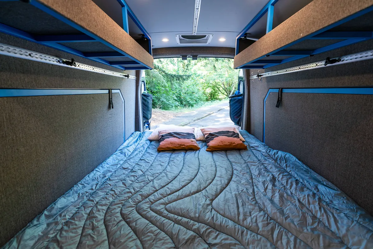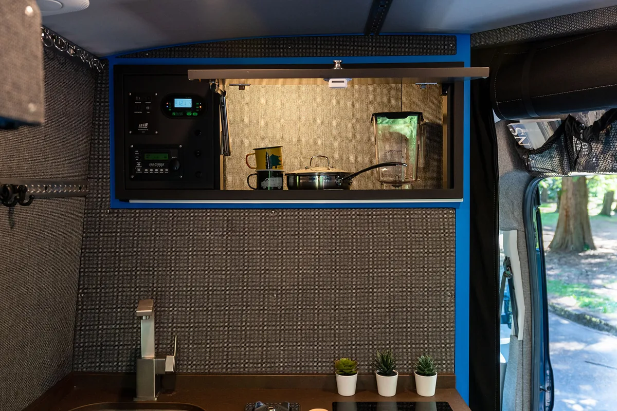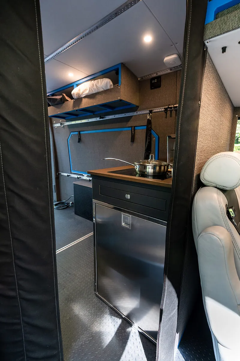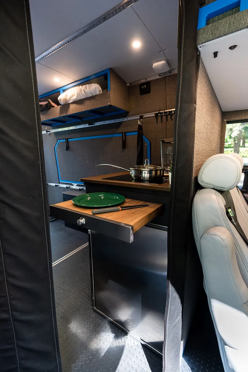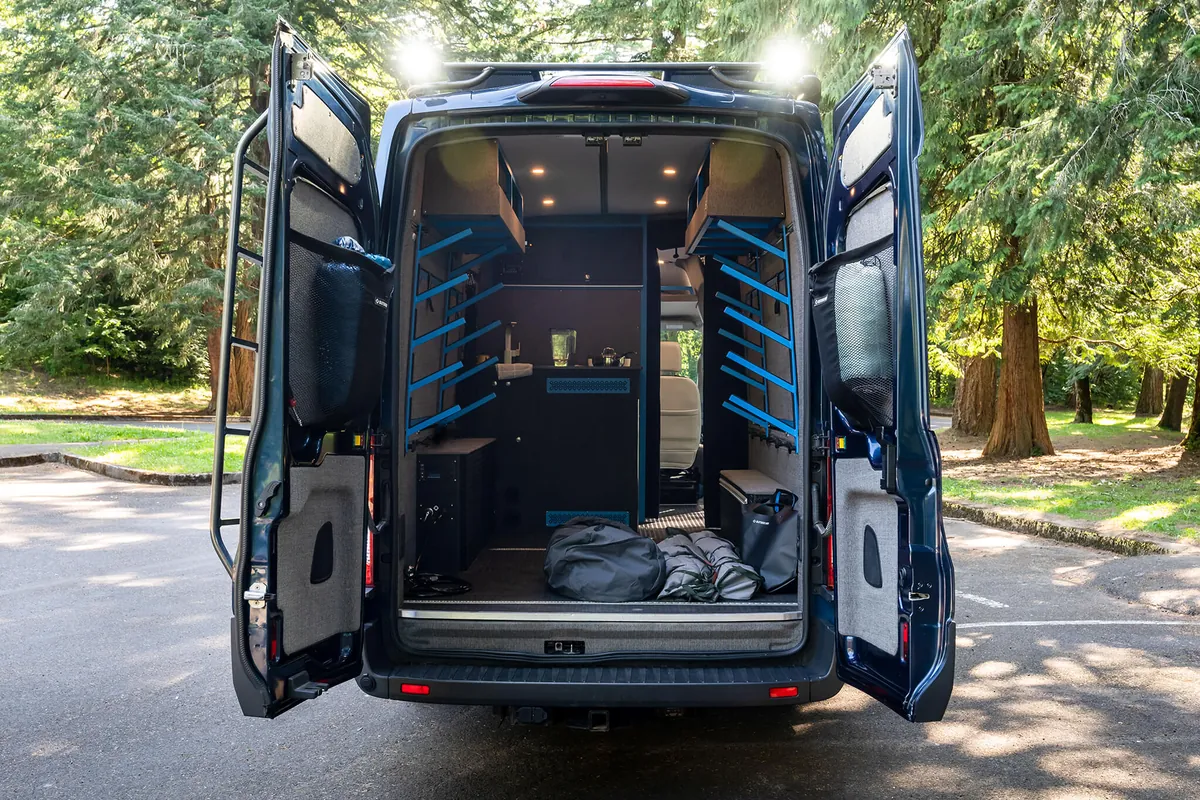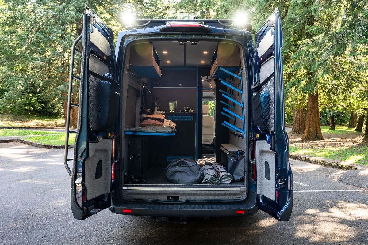Our custom Sprinter vans are engineered to provide the ultimate van life camping experience, combining the legendary reliability of Mercedes-Benz with camping-specific modifications. Experience the freedom of the open road as your Sprinter camper van transforms into your home away from home. With specialized features for camp cooking, off-grid camping, including sustainable power solutions and efficient storage, an Outside Van ensures that your camping adventures are comfortable and convenient. Our camper vans are also outfitted with tailored storage solutions to organize and haul any gear you need for whatever you enjoy doing during your vanlife camping trips, from hiking to fishing to just making s’mores around the campfire.
