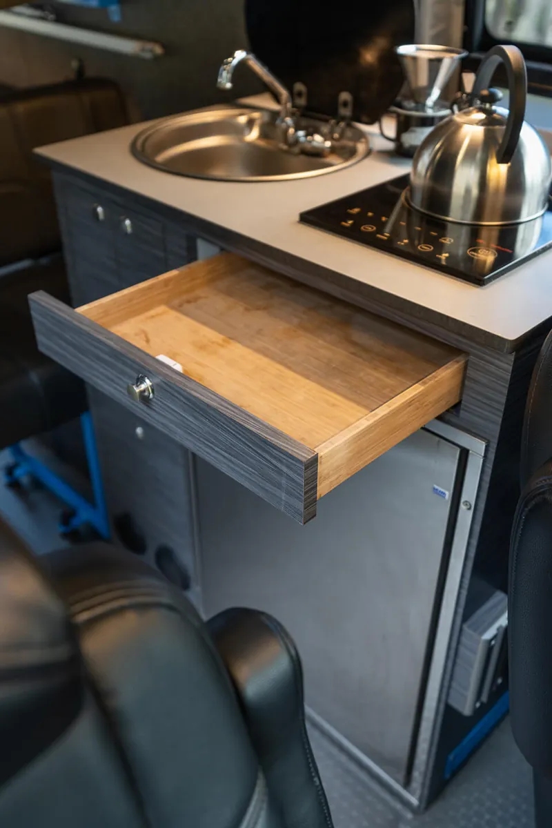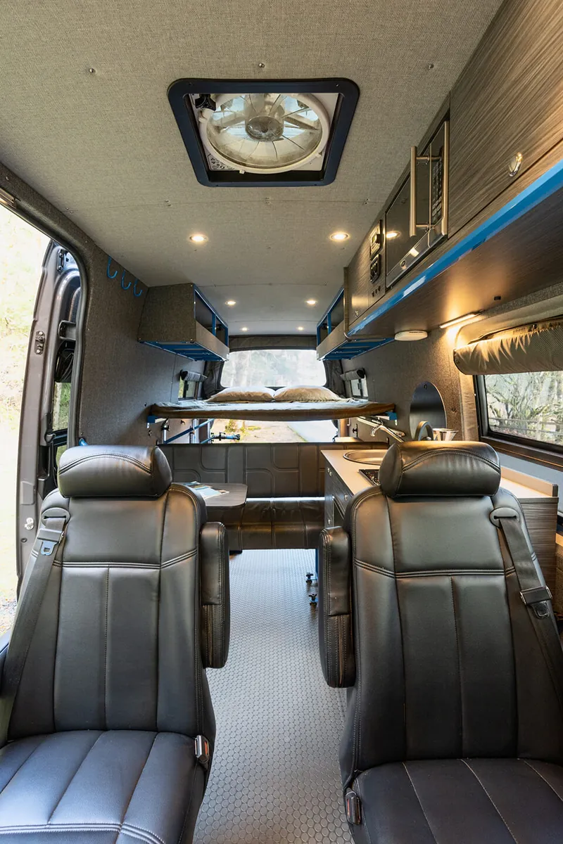 With FOX Factory shocks, off-road tires, integrated bike repair stands, tool storage, and fully-equipped living quarters, our vans can get you to any trailhead and help you stay out there in comfort.