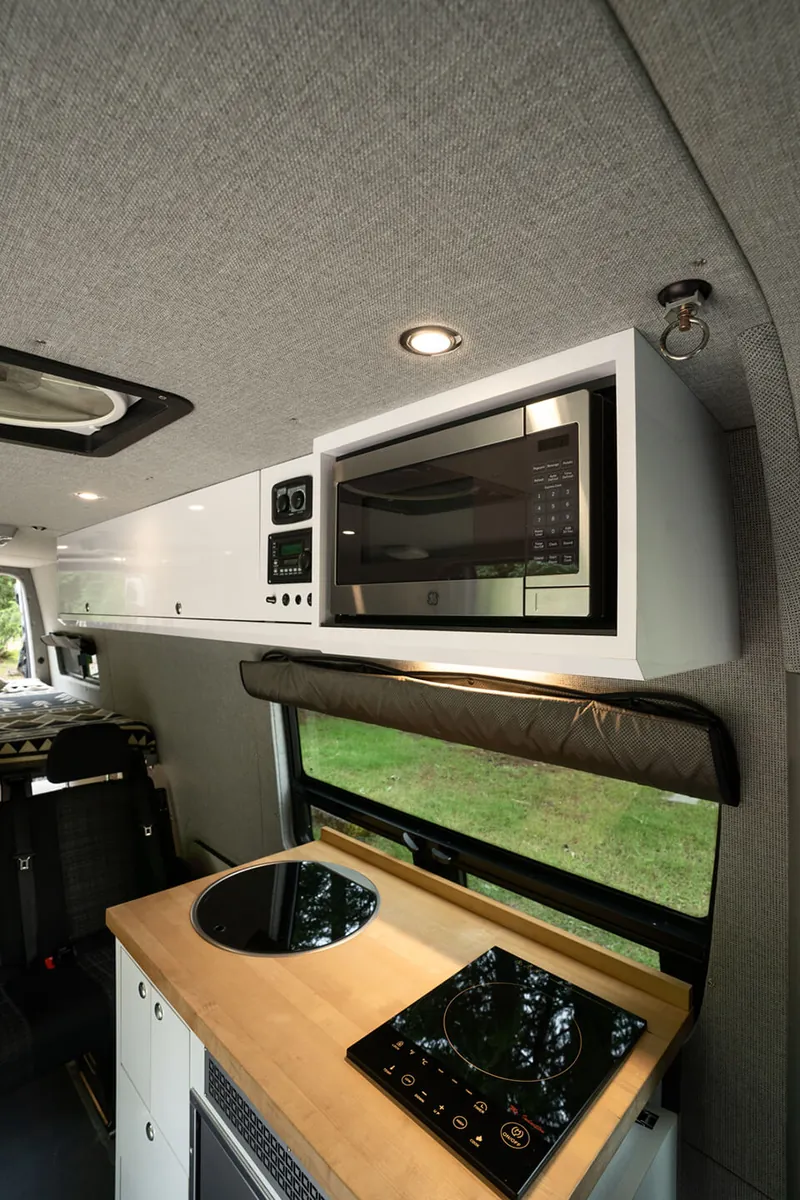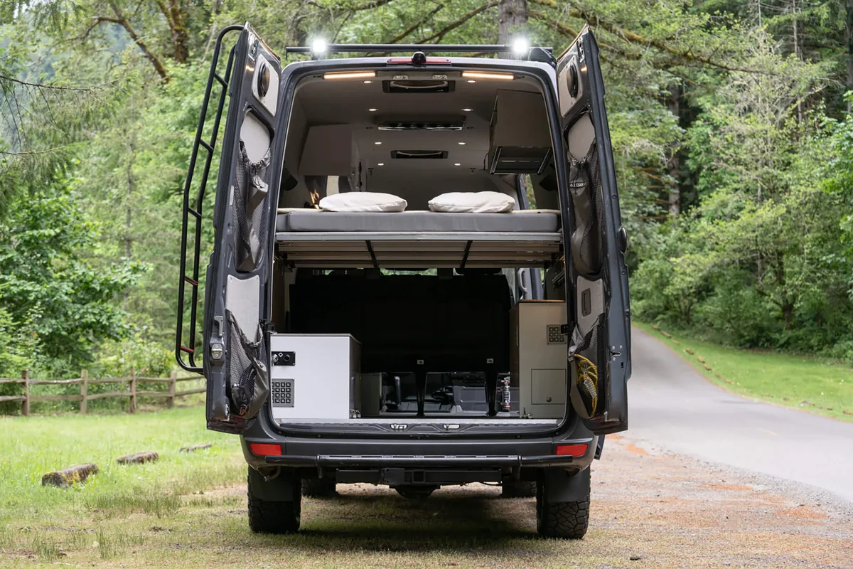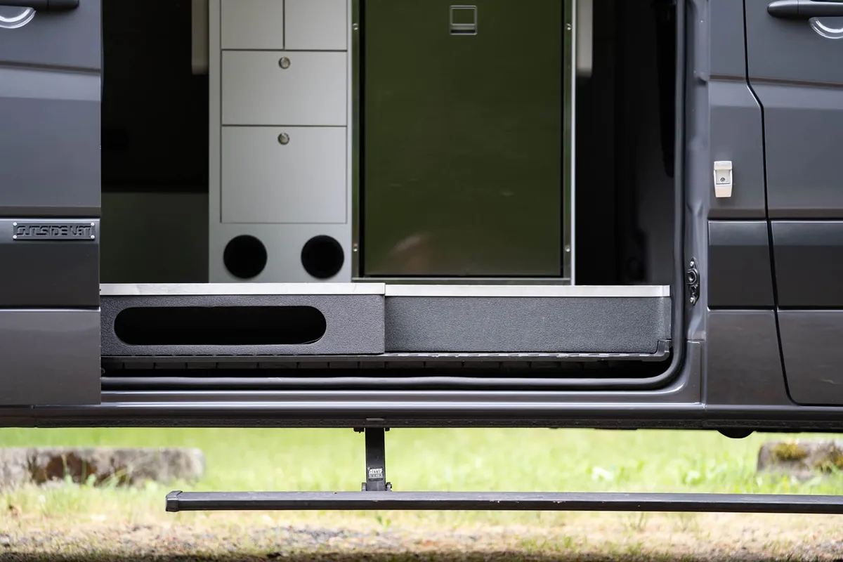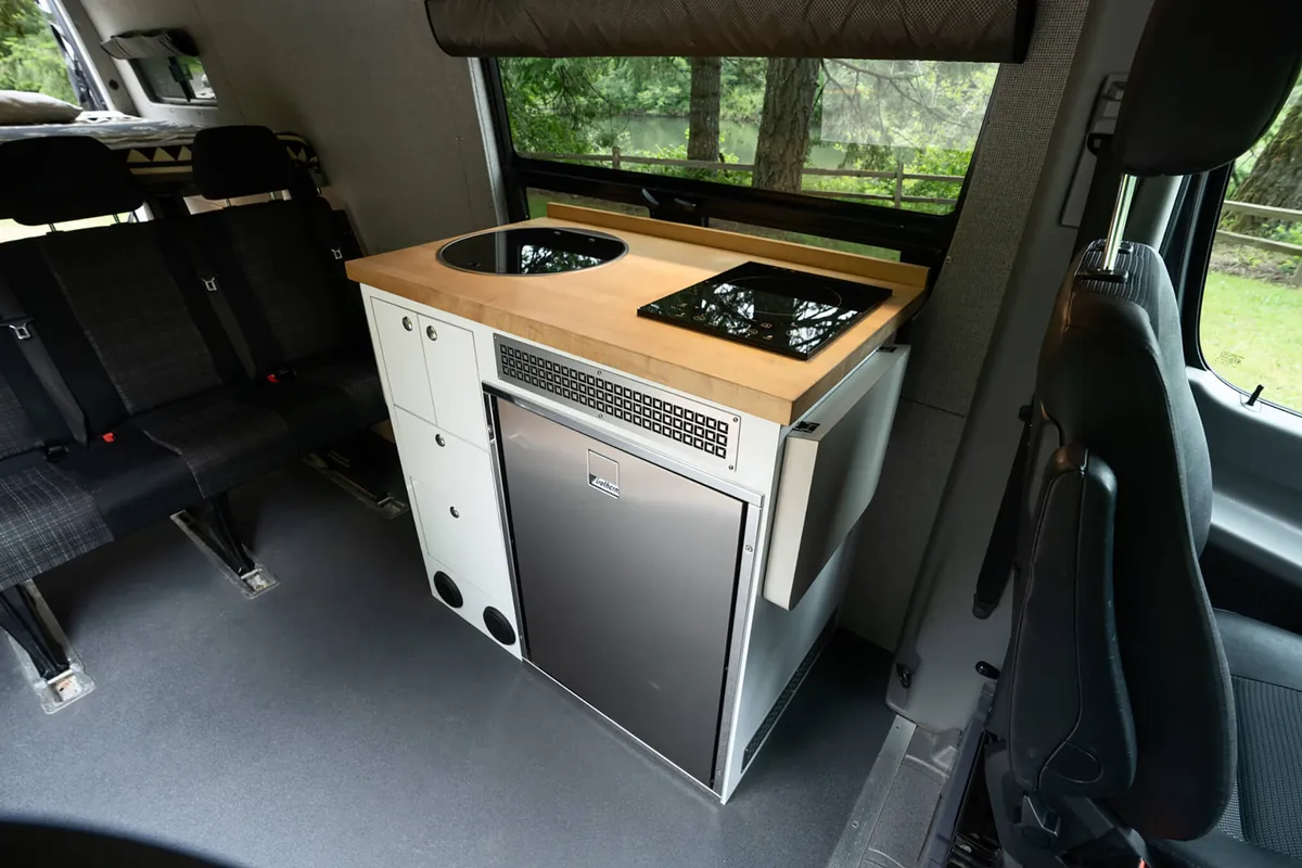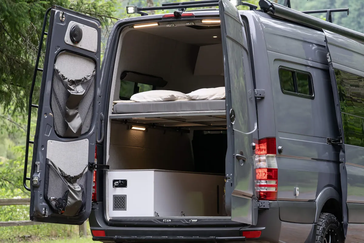 Our custom Sprinter vans are engineered to provide the ultimate van life camping experience, combining the legendary reliability of Mercedes-Benz with camping-specific modifications. Experience the freedom of the open road as your Sprinter camper van transforms into your home away from home. With specialized features for camp cooking, off-grid camping, including sustainable power solutions and efficient storage, an Outside Van ensures that your camping adventures are comfortable and convenient. Our camper vans are also outfitted with tailored storage solutions to organize and haul any gear you need for whatever you enjoy doing during your vanlife camping trips, from hiking to fishing to just making s’mores around the campfire.