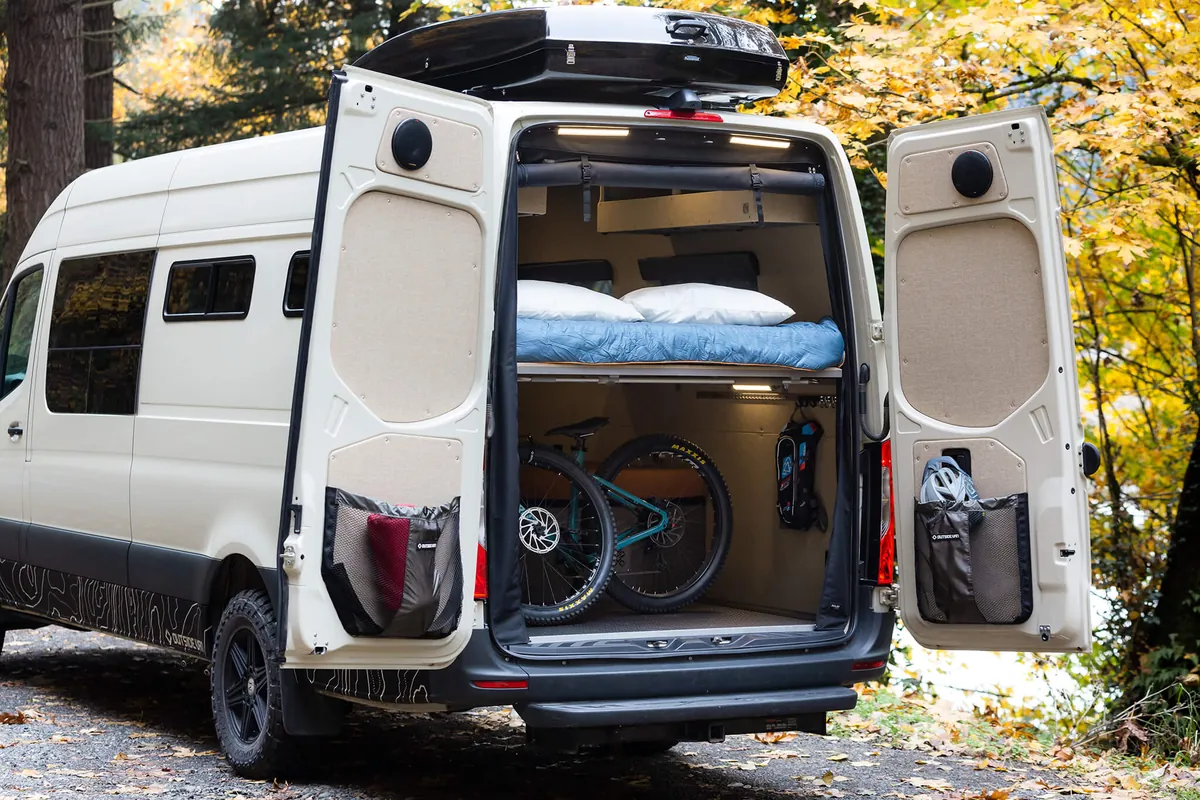 Don’t miss out on the thrill of waking up trailside and shredding straight from your mobile campsite – turn your MTB and mountain bike touring dreams into reality with Outside Van’s custom Sprinter vans. Whether it’s self-supported backcountry mountain bike trips, MTB race weekends, or out-and-back mountain bike rides in the remotest locations, we can make sure you have a comfortable mobile home base to relax and refuel. Begin your journey toward unforgettable mountain bike adventures today by exploring our extensive range of customization options. Contact us today to begin creating the ultimate MTB camping and touring vehicle and experience freedom like never before. Your next mountain biking expedition awaits, and we’re here to make it extraordinary.
