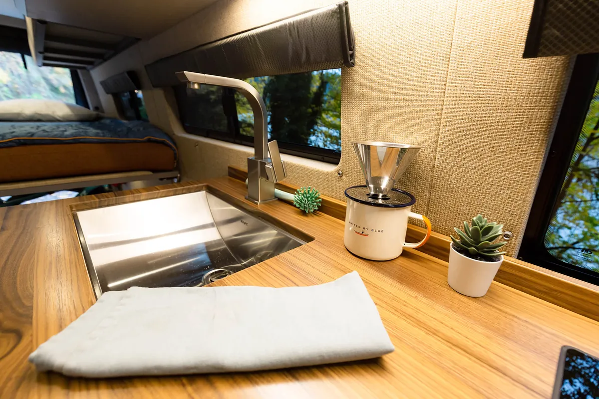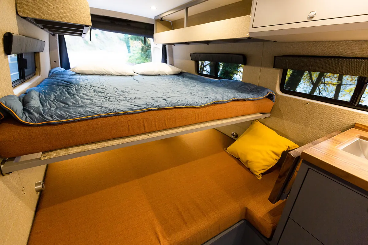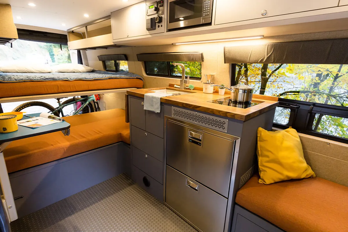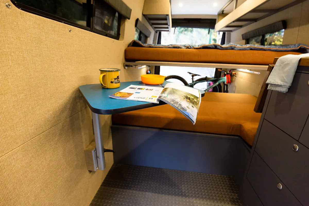 With FOX Factory shocks, off-road tires, integrated bike repair stands, tool storage, and fully-equipped living quarters, our vans can get you to any trailhead and help you stay out there in comfort.