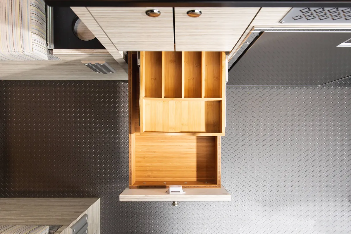 Our custom Sprinter vans are engineered to provide the ultimate van life camping experience, combining the legendary reliability of Mercedes-Benz with camping-specific modifications. Experience the freedom of the open road as your Sprinter camper van transforms into your home away from home. With specialized features for camp cooking, off-grid camping, including sustainable power solutions and efficient storage, an Outside Van ensures that your camping adventures are comfortable and convenient. Our camper vans are also outfitted with tailored storage solutions to organize and haul any gear you need for whatever you enjoy doing during your vanlife camping trips, from hiking to fishing to just making s’mores around the campfire.